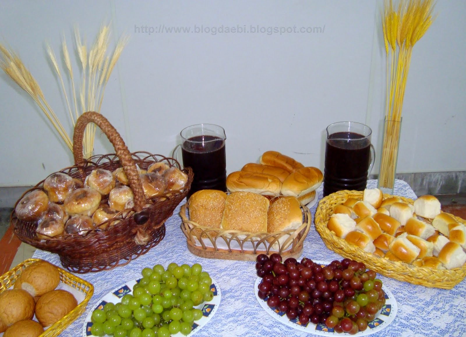-Una mesa con simbolos de la Pascua